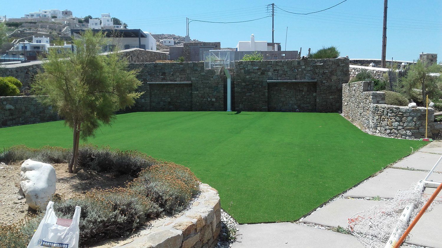 Der Landschaftsrasen sieht nicht nur aus wie natürliches Gras, sondern fühlt sich auch so an. Außerdem spart der Einsatz von Kunstgras Zeit und Geld.